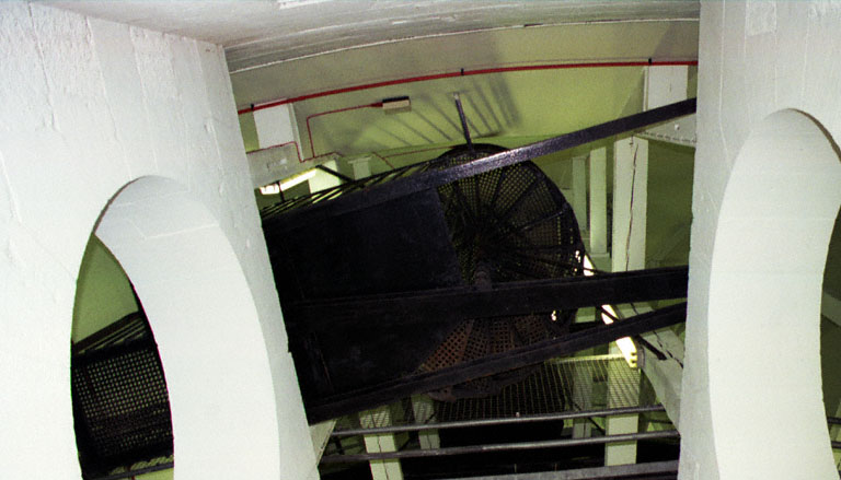 Das Foto links ist senkrecht in den Turm hochfotografiert; rechts sieht